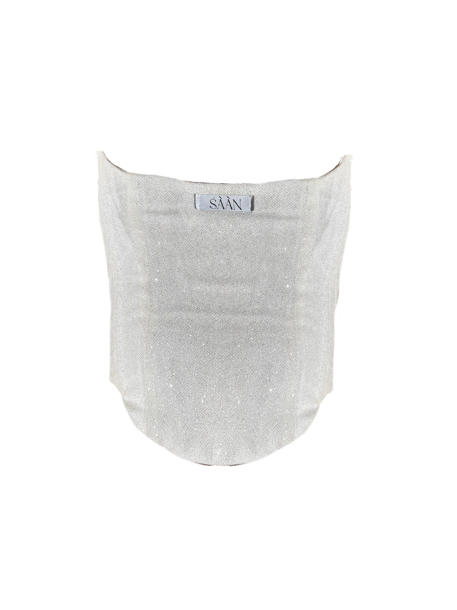 Corsetto in tulle Swarovski, realizzato interamente a mano.